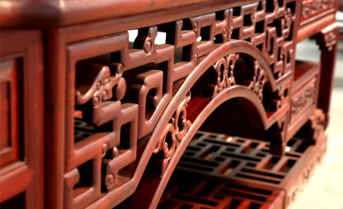流程三雕刻工序 為了讓紅木家具看上去更美觀,在木工工序完成之后一般都會(huì)用一些或簡單或復(fù)雜的雕花來進(jìn)行裝飾,也就是行業(yè)中所說的雕刻紋飾。雕刻紋飾必須在“認(rèn)榫”完成后進(jìn)行,因?yàn)椤罢J(rèn)榫”時(shí)需要修整,如果先做好雕花再開榫,紋理很難保證雕花部件都在同一平面上,而此時(shí)為了保證雕花...